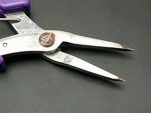 3. 元の革を端から小さなマイナスドライバを使い、こじるようにして剥がしていきます。 (上の写真はSR-1ではありません) |