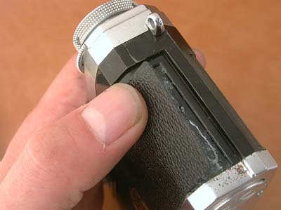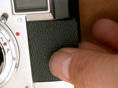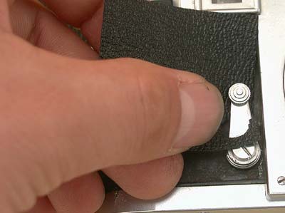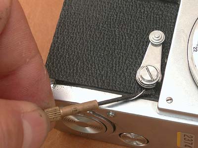 16. セルフタイマーレバーの下を滑らすように上側から入れます。 |