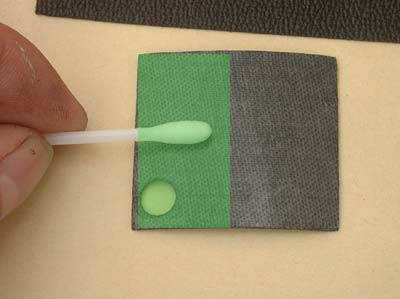 10. ボンドをチューブから出して、端の部分に薄くのばし、5分〜10分乾かします。接着剤を塗った面を手で触ってみて糸を引かないぐらいになるまで乾かしてください。 |