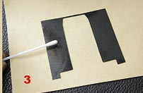 As above 1st to 3rd images, take out the new leatherette from the base paper, and turn over the leatherette. Then wet the alcohol or benzine or water on the adhesion side (flesh side, not leatherette's surface) The alcohol (or benzine/water) delays the adhesion temporary and allows you time to position and adjust the skin, After the alcohol (or benzine/water) gets dry, adhesion cames back again. |