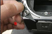 As for the waist level finder leatherette, squeeze under the hitch as 11th image, then adjust the position. |