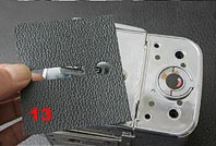 As above "4th" image, squeeze the new leatherette under the tripod block, then adjust the position. Please apply the new leatherette before the alcohol gets dry. |