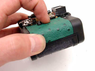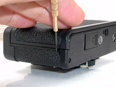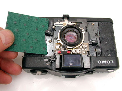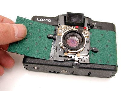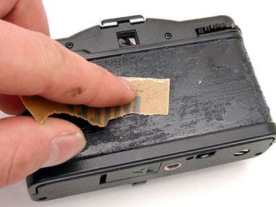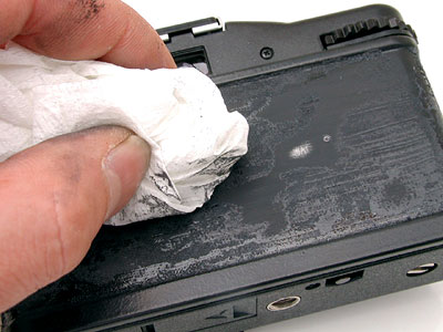 8. Removing old covering is not easy, so please rub alcohol on with paint brush on joining surface between covering and camera body. |