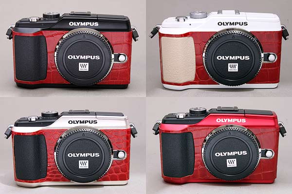 | E-PL2 Custom Color Leather kit This kit fits to Olympus E-PL2 This is NOT original kit from Olympus, It is Aki-Asahi's Custom kit. This kit contains Front 2 pieces leatherettes. Material is Curfskin. ![]() ![]() Color Variation.