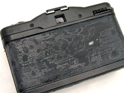8. Removing old covering is not easy, so please rub alcohol on with paint brush on joining surface between covering and camera body. |