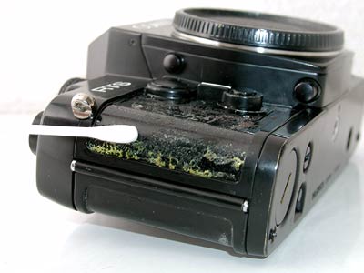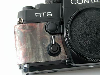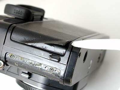 the selftimer lever. Do not hurry. Before alcohol get dry, covering does not stick. |